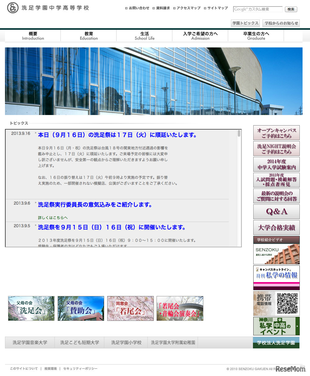 大型の台風18号は、記録的な大雨で各地に被害をもたらしている。最大級の警戒が必要な状況が続いており、連休最終日の9月16日、文化祭や学校説明会を予定していた中学校・高等学校の多くが、中止や延期を発表している。