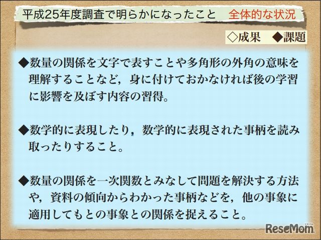 国立教育政策研究所は、平成25年度全国学力テストの調査結果を踏まえた指導の改善・充実に向けた説明会を9月19日(木)に東京会場で、10月7日(月)に岡山会場で開催する。この説明会の資料をホームページで公開している。