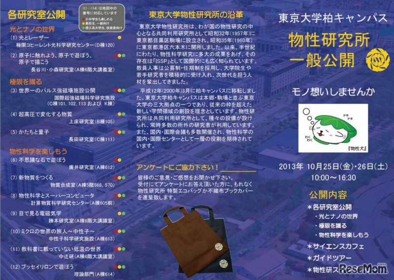 東京大学柏キャンパスは、女子中高生向けに理系の現場を体験できるイベント「未来をのぞこう」を10月26日に開催する。新領域創成科学研究科、物性研究所、大気海洋研究所の3つの研究機関がそれぞれガイドツアーなどを行うという。