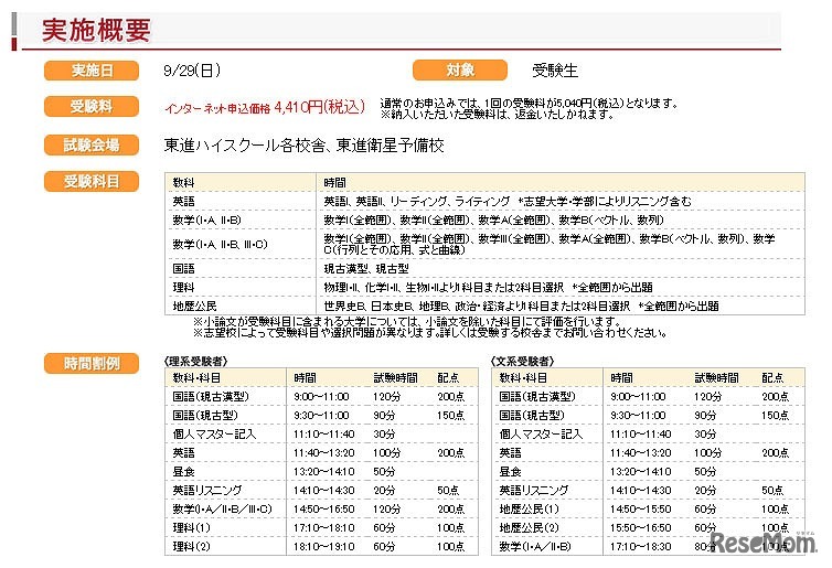 東進ハイスクールは9月29日、難関国公立・私立大を志望する受験生を対象とした「第3回難関大本番レベル記述模試」を開催する。試験会場は東進ハイスクールまたは東進衛星予備校で、受験料はインターネット申込みで4,410円。
