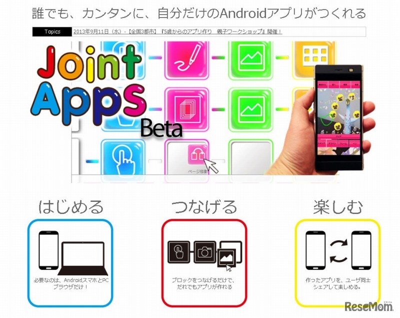 デジタルハリウッドは、「5歳からのアプリ作り 親子ワークショップ」を東京・大阪・鳥取の3都市で開催する。プログラムが組み込まれたブロックをパソコン上でつなげるだけで簡単アプリを制作することができるため、子どものころからICTに触れさせることができるという。