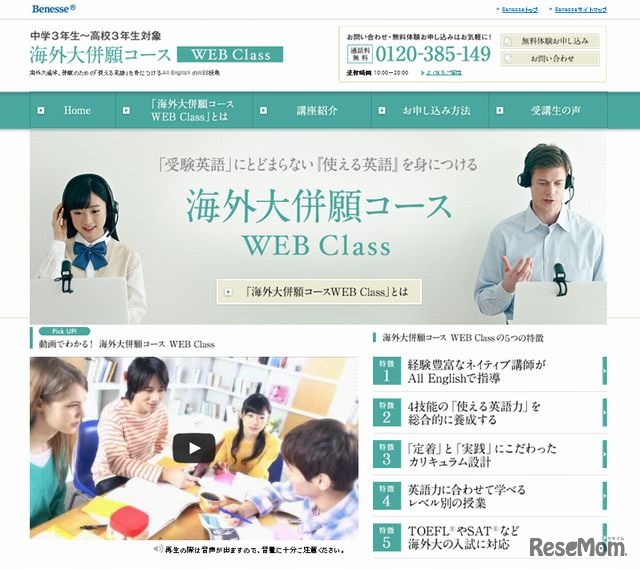 ベネッセは10月1日、海外大学や国際系大学への進学などを目指す中高生を対象にした「海外大併願コース WEB Class」に、1対1の授業でスピーキング指導を行う「アカデミックスピーキングプラス」を、オプション講座として新たに開講すると発表した。