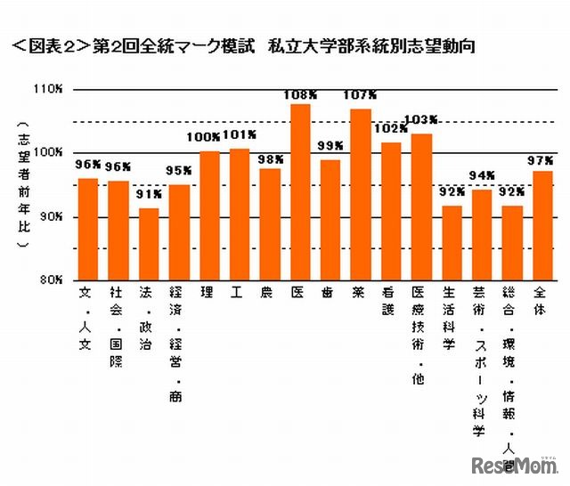 河合塾は10月11日、第2回全統マーク模試にみる2014年度入試の動向を同塾が提供する大学入試情報サイト「Kei-Net」に掲載した。今春同様「文低理高」「地元志向」の傾向があり、医療系で人気が高騰するという。