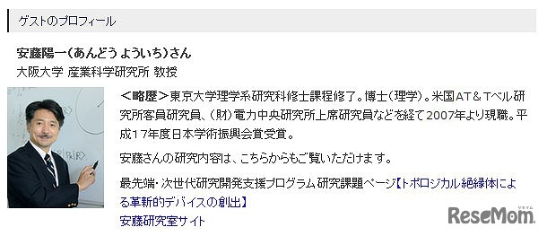 大阪大学は11月8日、サイエンスカフェ「高校生には分かるまい!物理学の最前線トポロジカル絶縁体」をアートエリアB1にて開催する。ゲストに大阪大学産業科学研究所 安藤陽一教授を迎える予定。定員は40名で、参加費は無料。
