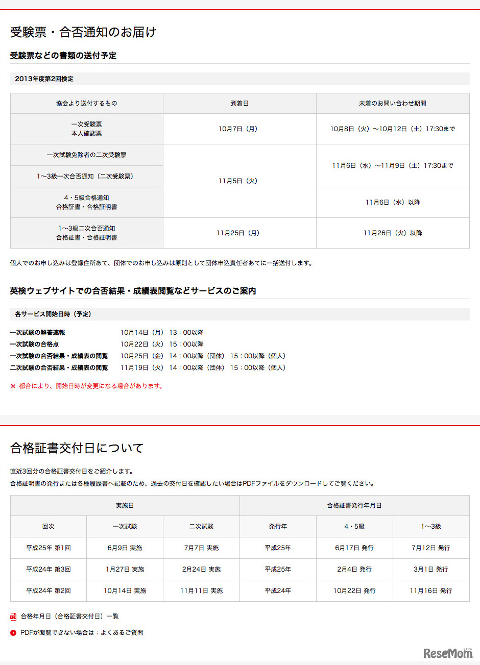 日本英語検定協会は10月14日、「2013年度第2回実用英語技能検定一次試験」の解答速報をホームページに公開した。解答はPDFで提供されている。一次試験の合格点の掲載は10月22日の予定。