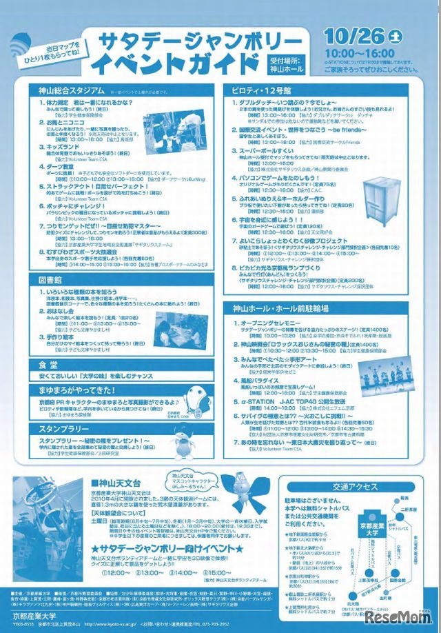 京都産業大学は、地域の人たちに大学のキャンパスを開放し、大学を身近に感じてもらおうと、「サタデージャンボリー」を10月26日(土)に開催する。来場自由で参加費は無料。