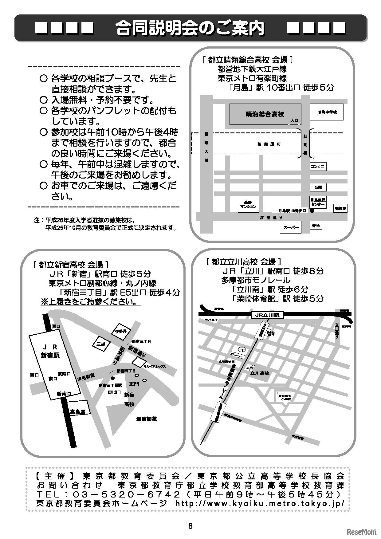 東京私立中学高等学校協会は10月27日から3週に渡り行われる「2013年度都立高等学校等合同説明会」に私立学校全般の質問に答えるため、私立学校ブースを設置する。