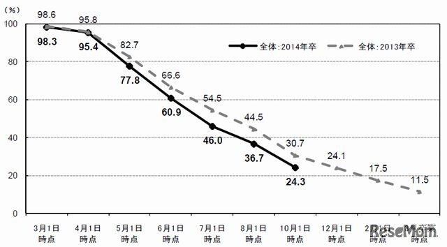 大学生の就職内定率は8割、前年比5.5pt増…リクルート10月度速報 2枚目の写真・画像