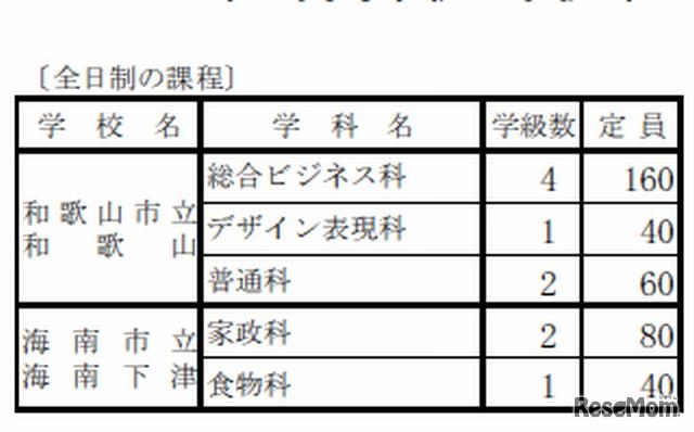 和歌山県教育委員会は10月22日、平成26(2014)年度の和歌山公立高校の学校別・学科別募集定員を発表した。県立高校の全日制は7,560人、市立高校の全日制は380人募集する。