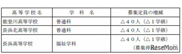 滋賀県教育委員会は11月1日、平成26(2014)年度県立高校の募集定員を発表した。前年度と比べて中学校卒業予定者数が230人増加することから募集人員を160人増やし、全日制46校で計10,680人募集する。