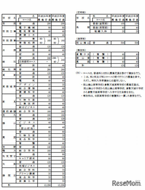 岡山県教育委員会は10月、平成26(2014)年度県立高校の入学者選抜の実施要項や募集定員を発表した。募集定員は前年度と同じ。平成26年度入学者選抜から、県立高校の新しい入試制度が始まる。