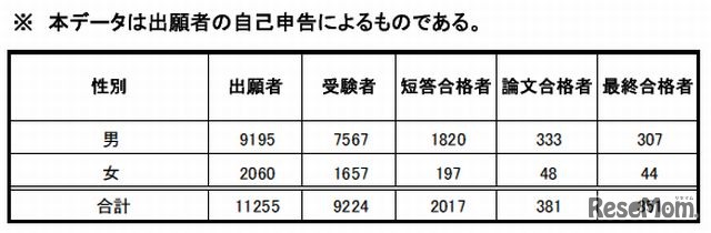 法務省は11月7日、2013年司法試験予備試験の最終結果を発表した。受験者数は9,224人、合格者数は前年比132人増の351人で、合格率は3.8%。合格者の最年少は21歳、最年長は60歳、平均年齢は27.66歳であった。