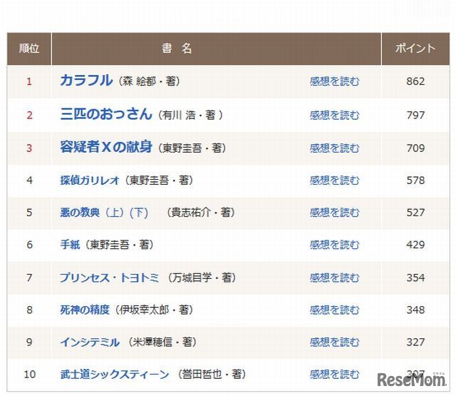 高校生が選んだ文春文庫人気ベスト30…1位は「カラフル」 2枚目の写真・画像