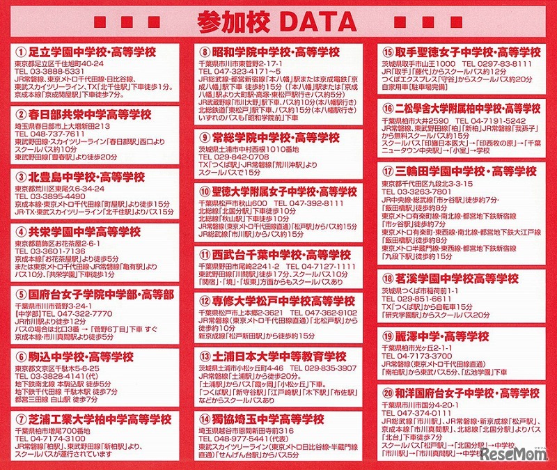 「TX(つくばエクスプレス)沿線私立中学校合同説明会」が11月24日、東京電機大学・東京千住キャンパスで開催される。東京、埼玉、千葉、茨城1都3県からの20校が集まり、ブースでの個別相談や、入試直前のアドバイスなどを受けることができる。