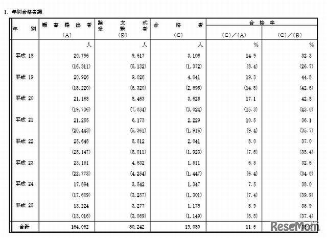 公認会計士・監査審査会は11月15日、平成25年公認会計士試験の合格発表を行った。合格者は前年度比169人減の1,178人で、現在の試験制度となった平成18年以降、過去最低の合格者数となった。