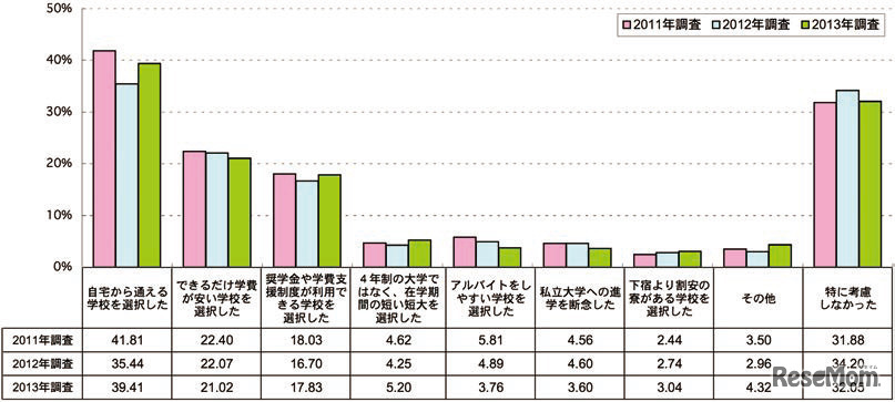 進学先を考える際に学費面で考慮したこと(複数回答)