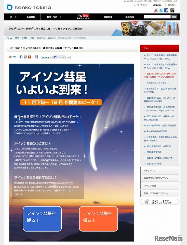 天体望遠鏡の人気ランキング…アイソン彗星が接近中 4枚目の写真・画像