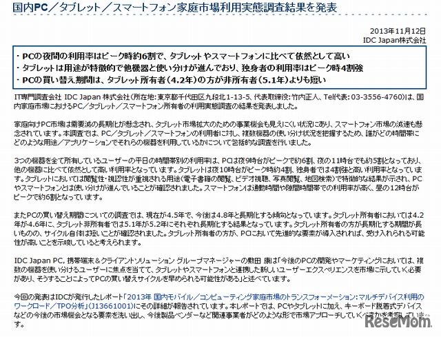 国内家庭市場におけるPC・タブレット・スマートフォン所有者の利用実態調査について