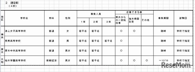 神奈川県は平成25年度(2013年度)第3学期受け入れの私立中学・高等学校等転・編入学試験実施計画について公表した。県内の全日制の高校で24校、中学で26校が試験を実施する。
