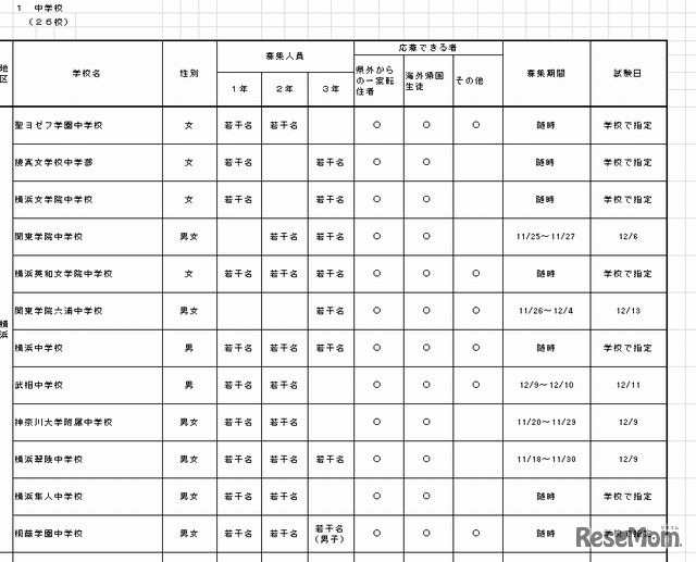 神奈川県は平成25年度(2013年度)第3学期受け入れの私立中学・高等学校等転・編入学試験実施計画について公表した。県内の全日制の高校で24校、中学で26校が試験を実施する。
