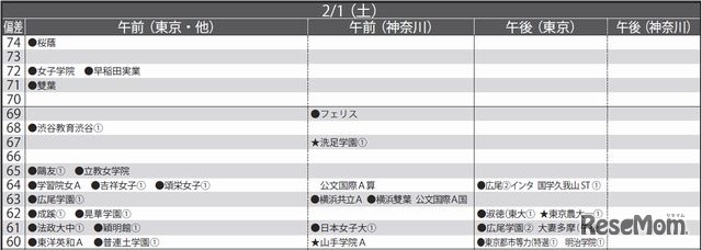 首都圏模試センターは11月18日、「2014年入試 予想偏差値一覧(12月版)」を公開した。合格率80%の偏差値を男女別・日程別に偏差値マップで掲載している。