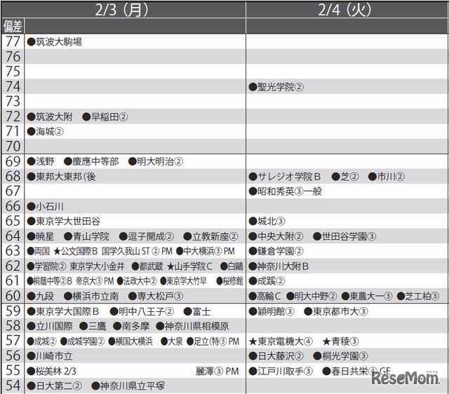 首都圏模試センターは11月18日、「2014年入試 予想偏差値一覧(12月版)」を公開した。合格率80%の偏差値を男女別・日程別に偏差値マップで掲載している。