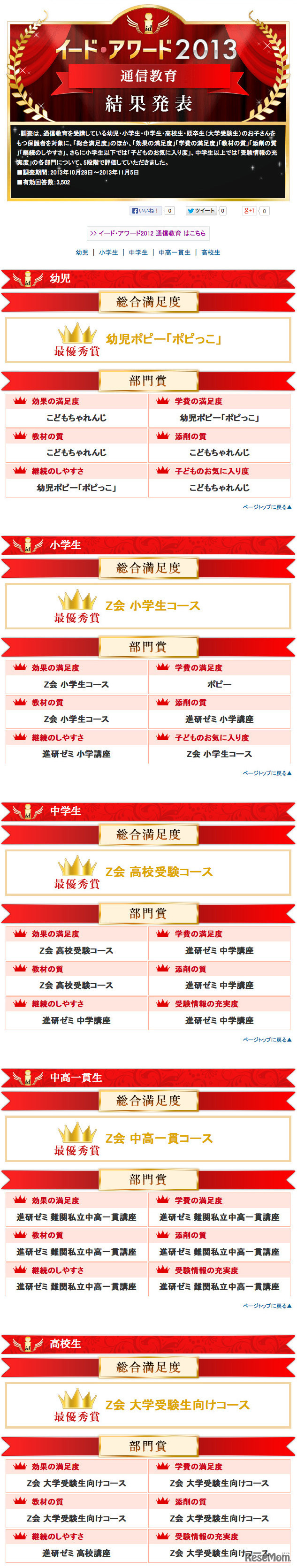イード・アワード2013「通信教育」…幼児「幼児ポピー」、小学生以上「Z会」が最優秀賞受賞 2枚目の写真・画像