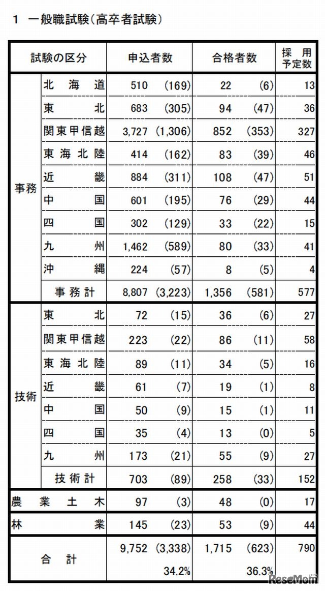 一般職試験(高卒者試験)の合格状況
