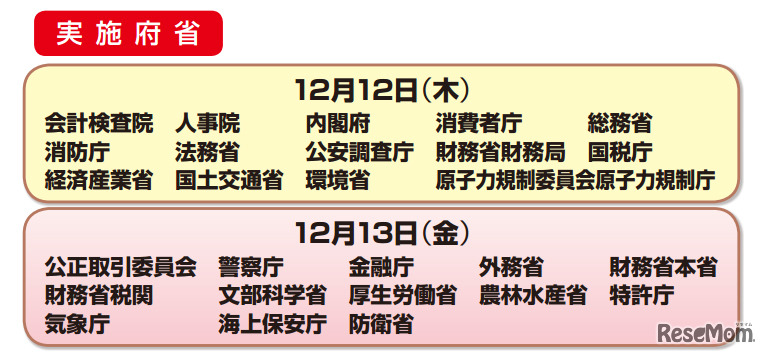 霞が関の各府省は、12月12日と13日の両日、大学生・大学院生を対象に霞が関の職場を開放して行う体験型イベント「霞が関OPENゼミ2013」を開催する。職場見学のほか、若手職員との意見交換などもできるという。