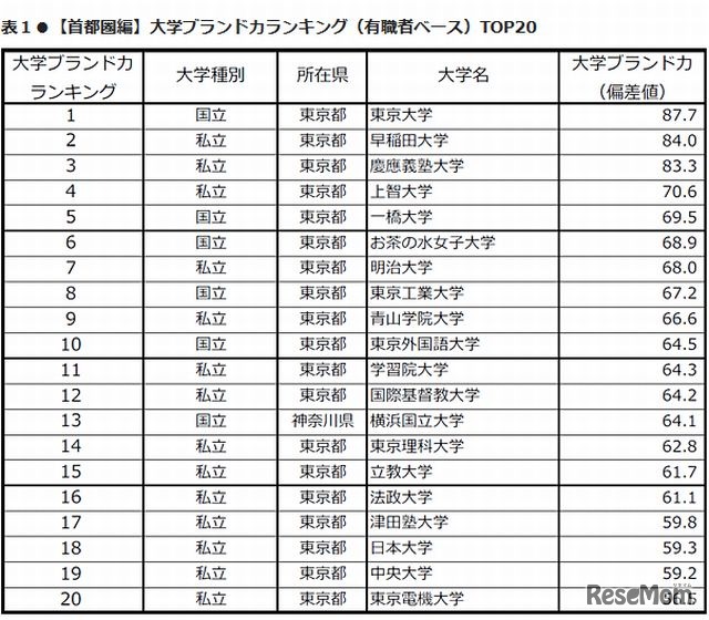 日経BPコンサルティングは11月22日、「大学ブランド・イメージ調査2013-2014」を発表した。首都圏編のトップ3には、第1位「東京大学」、第2位「早稲田大学」、第3位「慶應義塾大学」がランクインした。トップ5は昨年と同じだった。