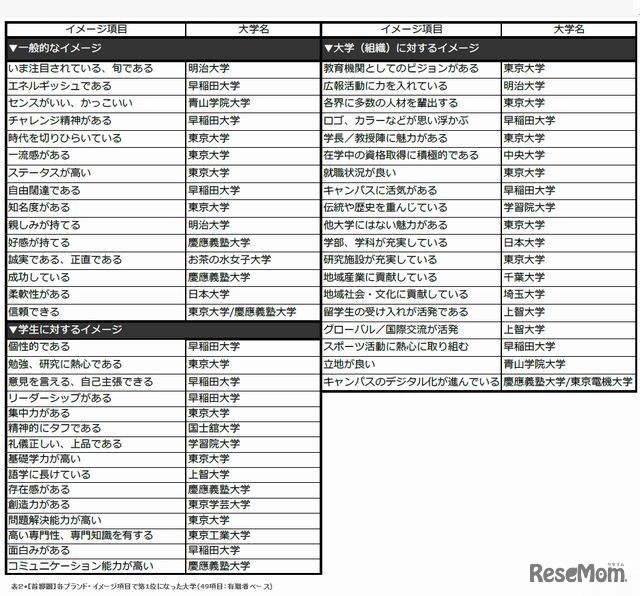 日経BPコンサルティングは11月22日、「大学ブランド・イメージ調査2013-2014」を発表した。首都圏編のトップ3には、第1位「東京大学」、第2位「早稲田大学」、第3位「慶應義塾大学」がランクインした。トップ5は昨年と同じだった。