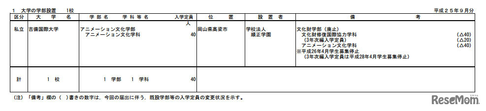 文部科学省は11月22日、2014年度開設予定の私立大学の学部・学科および大学院の研究科・専攻の設置届出について発表した。設置届出を受理した大学(2013年9月分)は、吉備国際大学など3校。