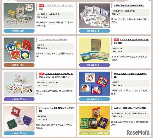 福音館書店は、「2013クリスマス・セレクション」としてホームページに紹介している絵本の注文を、インターネット通販にて受け付ける。さまざまな年齢を対象にした「絵本・童話セット」や「クリスマス・冬の絵本」などが紹介されている。
