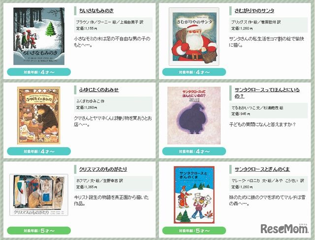 福音館書店は、「2013クリスマス・セレクション」としてホームページに紹介している絵本の注文を、インターネット通販にて受け付ける。さまざまな年齢を対象にした「絵本・童話セット」や「クリスマス・冬の絵本」などが紹介されている。