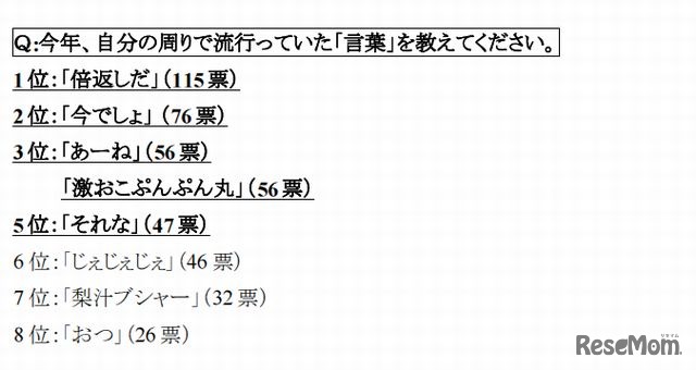 サイバーエージェントが提供する、女子中高生を中心とした10代向けブログ&コミュニティ「Candy(キャンディ)」は11月26日、「2013年女子中高生流行語ランキング」を発表した。1位は「倍返し」がランクインした。