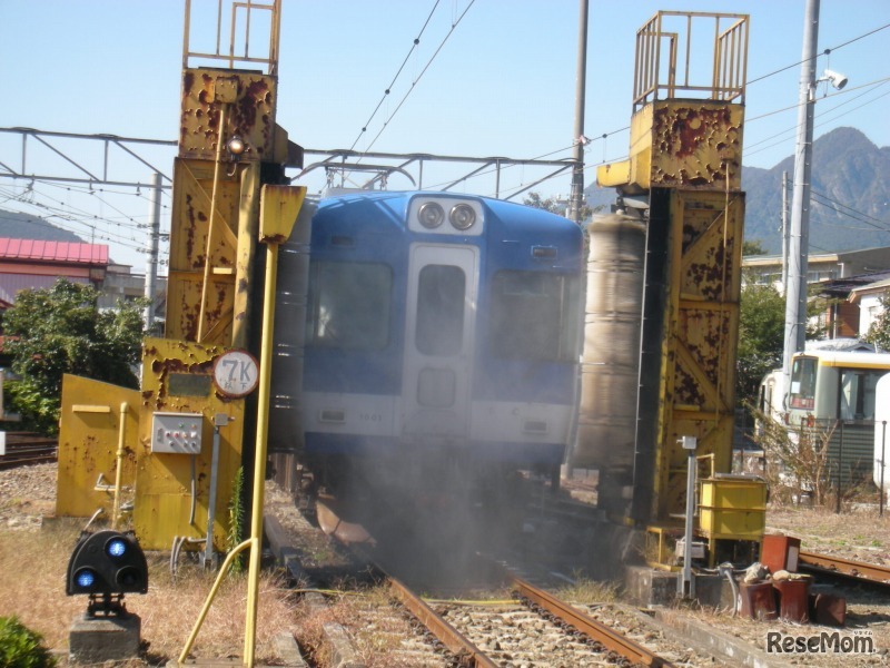 電車を洗う「洗車機」通過体験