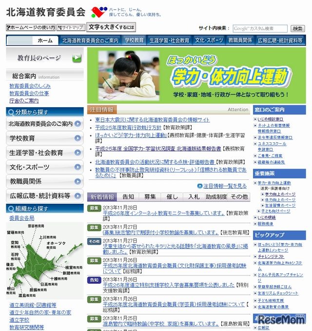 北海道教育委員会は11月26日、平成26(2014)年度の北海道立高校の学校別・学科別募集定員を発表した。高校配置計画に基づき、募集定員は前年度と比べ、全日制18校で720人減、定時制3校で120人減の計3万3,800人。
