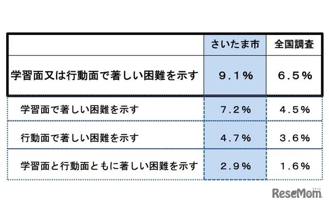 さいたま市は11月25日、3月に実施した「通常の学級に在籍する特別な教育的支援を必要とする児童生徒に関する調査」の結果を発表。発達障害が疑われる児童生徒のうち、小学校では4割、中学校では8割近くが特別な教育的支援を受けていないことがわかった。
