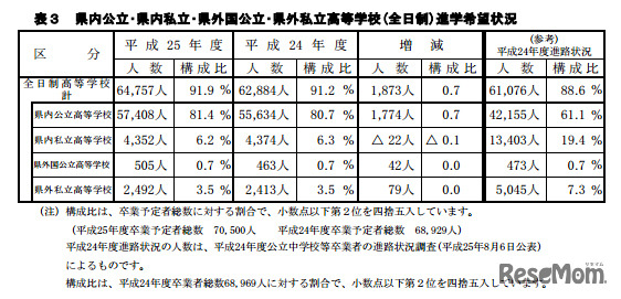 県内公立・私立・県外国公立・県外私立高等学校(全日制)進学希望状況