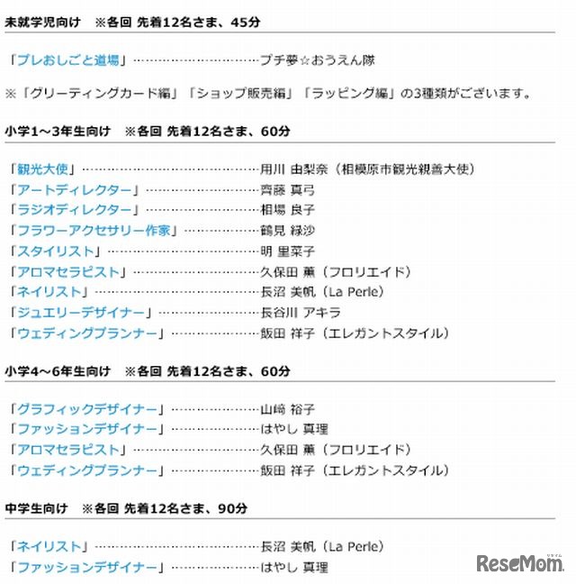 夢★らくざプロジェクトは12月15日(日)、未就学児、小学生、中学生が対象の職業体験イベント「おしごとなりきり道場」第十弾を、神奈川県相模原市の「ユニコムプラザさがみはら」で開催する。