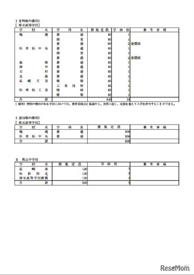 長崎県教育委員会は平成26(2014)年度公立高校の募集定員を発表した。募集定員は前年度と変わらず9,920人で、通信制を新たに2校新設し各校300人の募集定員となる。