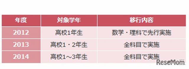 代々木ゼミナールは12月6日、2015年度より実施される新課程入試の概要や変更点をまとめた「新課程入試ガイド」を公表した。2015年度は、数学と理科のみ先行実施となり、2016年度より全科目が新課程入試となる。