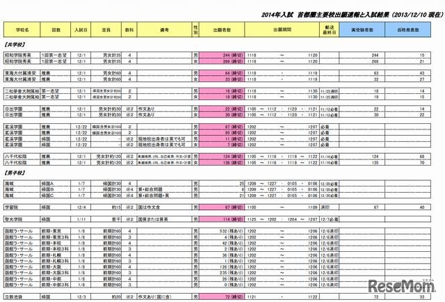四谷大塚は12月10日、首都圏主要校の出願速報と入試結果をホームページに掲載した。東海大附属浦安(推薦)や二松学舎大附属浦安(第一志望)などの合格者数のほか、茨城県と栃木県の公立中高一貫校の出願者数が公表された。