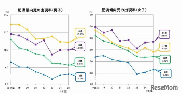 文部科学省が12月13日、平成25年度(2013年度)学校保健統計調査(速報値)を公表した。平均身長は横ばいで体重は減少傾向だが、肥満傾向児が北海道、東北地方に出現率が高い傾向がみられた。世代間の発育を比較すると、現代っ子が早期に発育していることがわかった。