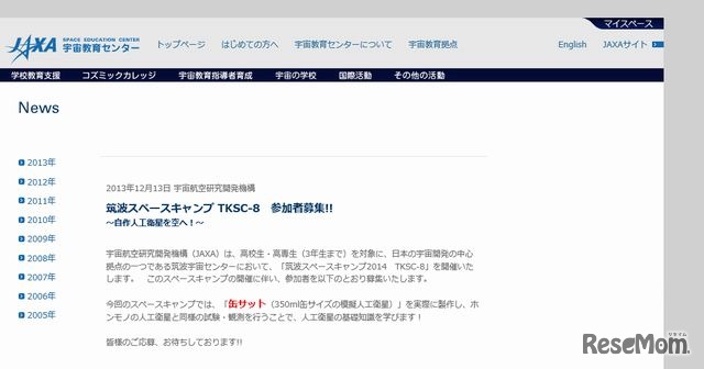 宇宙航空研究開発機構(JAXA)は3月26日から29日の4日間、筑波宇宙センターにて「筑波スペースキャンプ2014 TKSC-8」を開催する。対象は高校生・高専生で、人工衛星の基礎知識を学ぶことができる。
