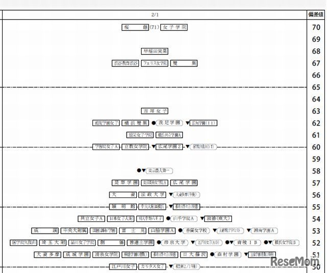 四谷大塚は、12月8日に実施した「第6回合不合判定テスト」の偏差値一覧をウェブサイトに公開した。テスト結果に基づく合格可能性80%と50%の偏差値が、男女別・日程別に掲載されている。今回が最終回となる。