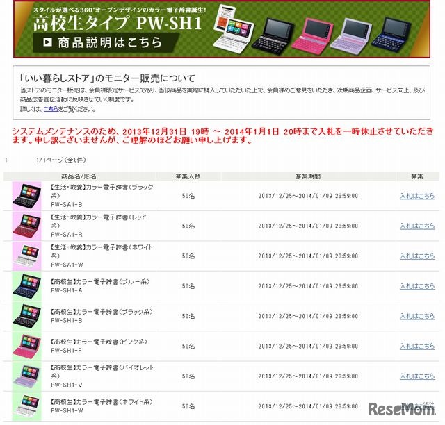 シャープは12月25日、カラー電子辞書Brainシリーズの高校生向けモデル「PW-SH1」と、中学生向けモデル「PW-SJ1」を発表した。どちらも2014年1月24日発売予定。希望小売価格はオープンだが、予想実売価格は「PW-SH1」が4万円前後、「PW-SJ1」が3万6千円前後。