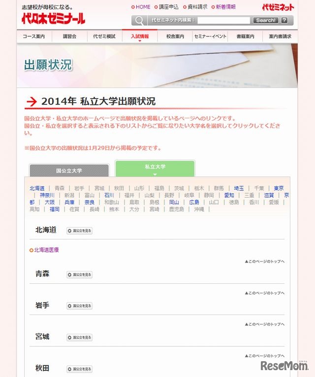 代々木ゼミナールは1月14日、出願状況を掲載している大学へのリンク一覧をウェブサイトに掲載した。河合塾が提供する大学入試情報サイト「Kei-Net」も出願速報を行っている私立大学へのリンク集を掲載している。
