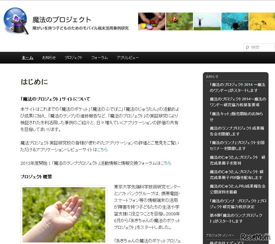 東京大学先端科学技術研究センター、ソフトバンクモバイル、エデュアスはは、携帯情報端末を活用した障がい児の学習・生活支援を行う「魔法のプロジェクト2014 ~魔法のワンド~」の協力校を1月21日より募集開始した。