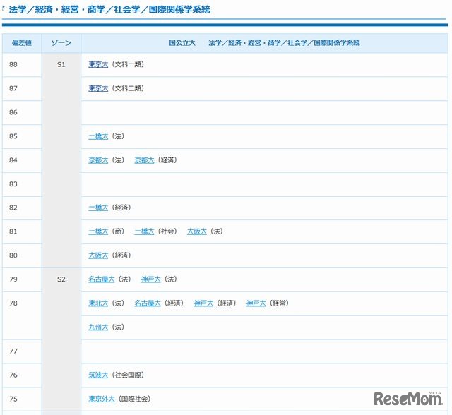 法学/経済・経営・商学/社会学/国際関係学系統(国公立)